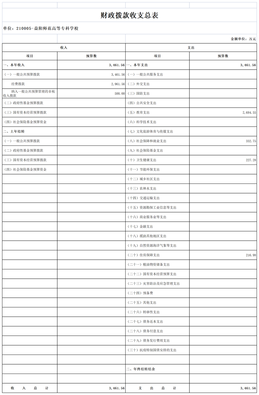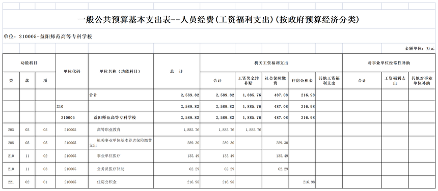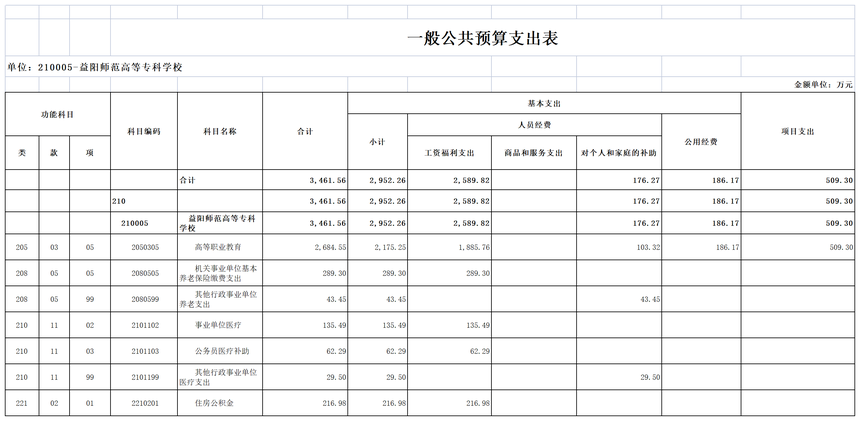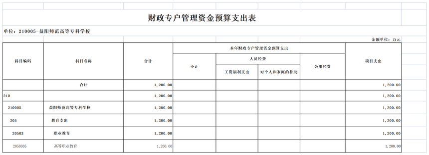 益阳师范高等专科学校2023年部门预算公开