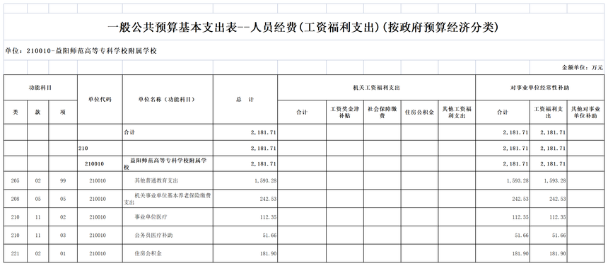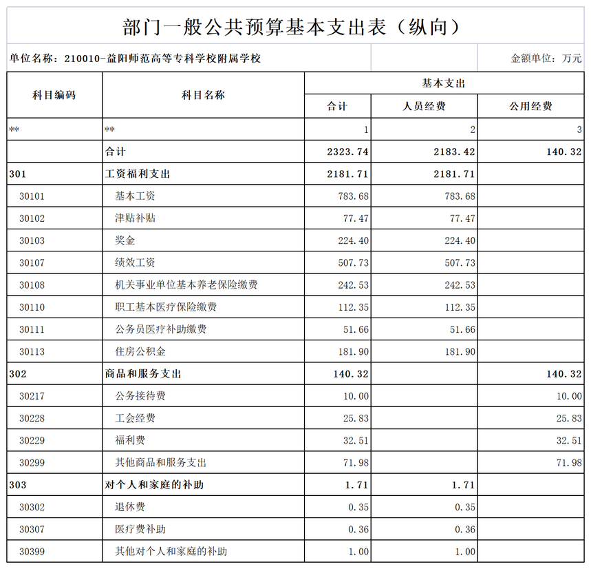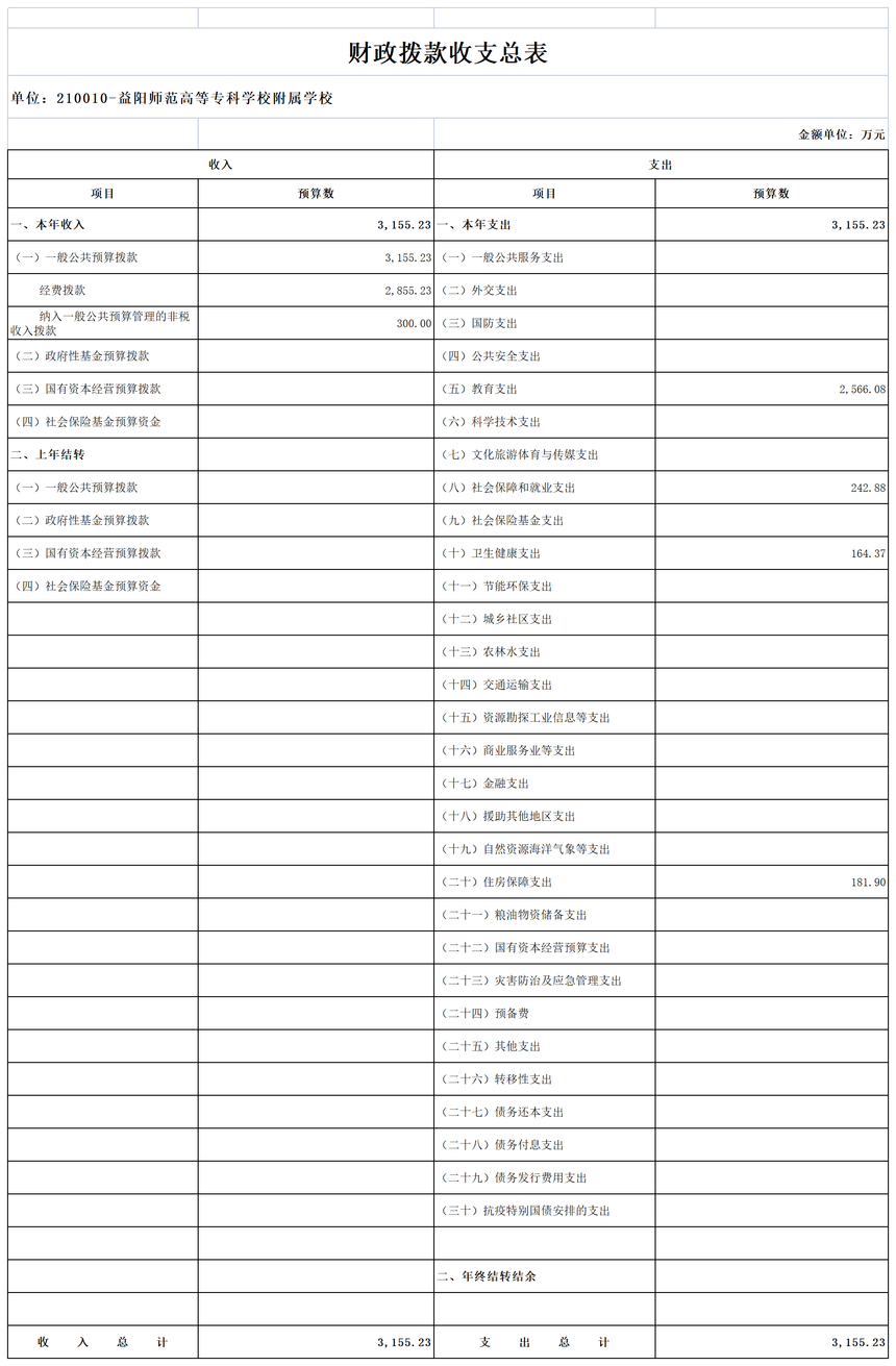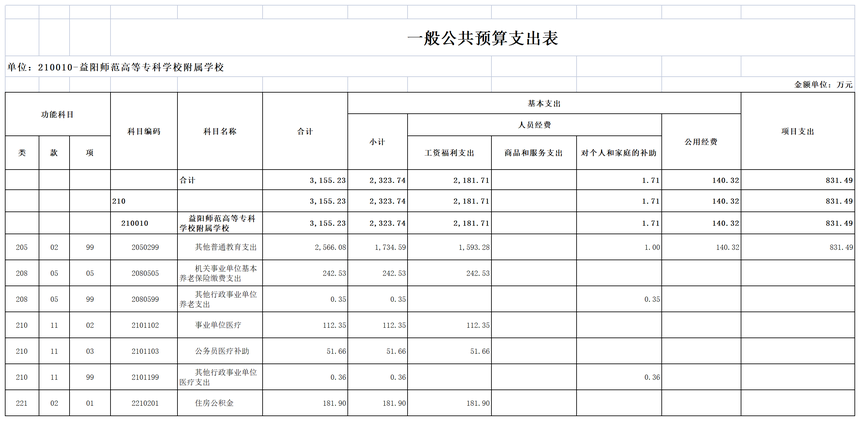益阳师范高等专科学校附属学校2023年部门预算公开